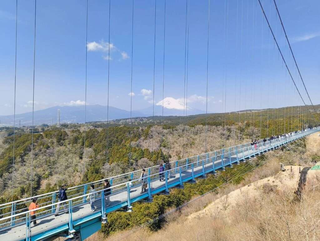 Walking across the bridge, you get a wide, open view of the surrounding landscape—with Mount Fuji rising in the distance. On a clear day, the contrast between the modern structure of the bridge and the timeless presence of Fuji creates a really striking view.